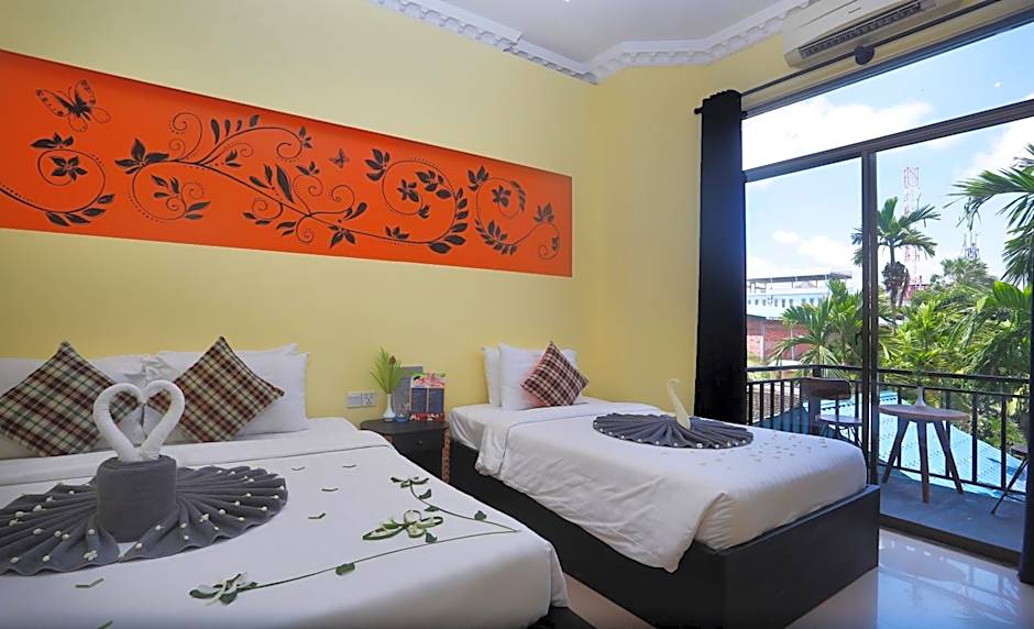 Featuring with pool and garden view, Air-conditioned room come with tiled or wooden flooring, a safety box, writing desk, wardrobe, seating area, small fridge, bathrobes and a TV are also included. The private bathroom offers shower facility, hairdryer and free toiletries. Benefits include: - Free bus station pick up by tuk tuk (Only in Siem Reap) - Free 2 bottles of water daily - Complimentary coffee and tea in the room - Complimentary welcome drink and cold towel upon arrival - Offer 20% off massage service - Offer happy hour buy 2 get 1 free at pool side - Daily clean room - Free Wifi - Free big Parking Space - Free Swimming Pool - Complementary 2 hours early check in or late check out ( Subject to room available ) - Complimentary honeymoon or birthday set up (please provide details in advance using the Special Requests box available)