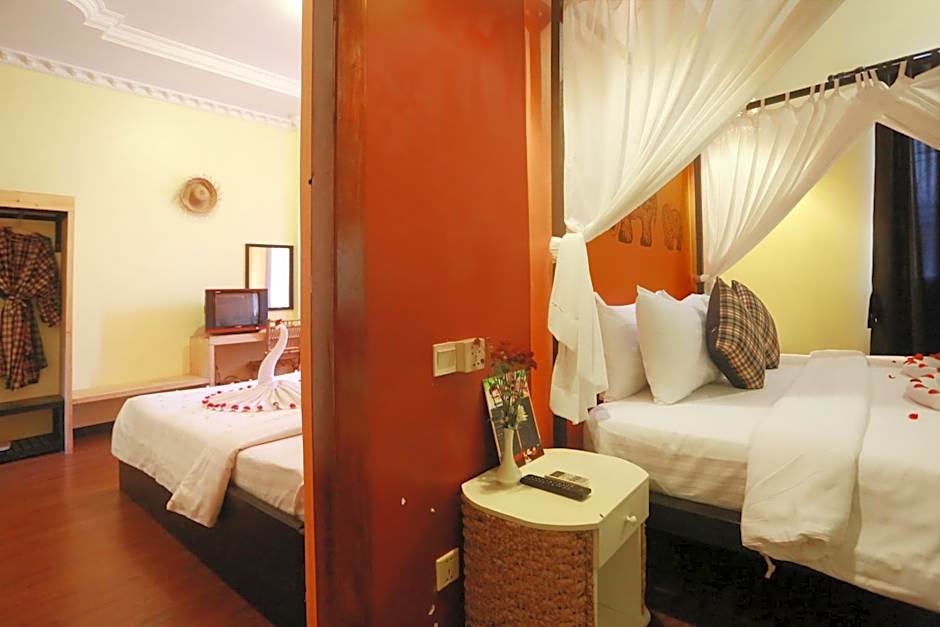 Featuring with private balcony, Air-conditioned room come with tiled or wooden flooring, a safety box, writing desk, wardrobe, seating area, small fridge, bathrobes and a TV are also included. The private bathroom offers shower facility, hairdryer and free toiletries. Benefits include: - Free bus station pick up by tuk tuk (Only in Siem Reap) - Free 2 bottles of water daily - Complimentary coffee and tea in the room - Complimentary welcome drink and cold towel upon arrival - Offer 20% off massage service - Offer happy hour buy 2 get 1 free at pool side - Daily clean room - Free Wifi - Free big Parking Space - Free Swimming Pool - Complementary 2 hours early check in or late check out ( Subject to room available ) - Complimentary honeymoon or birthday set up (please provide details in advance using the Special Requests box available)